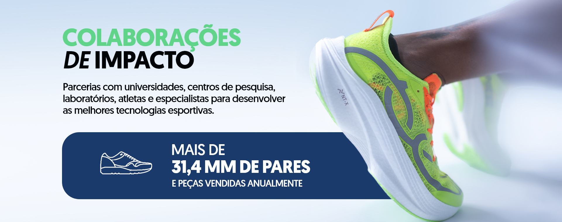 A inovação é promovida por meio de colaboração com atletas, especialistas, pesquisadores e laboratórios no Brasil e internacionalmente.